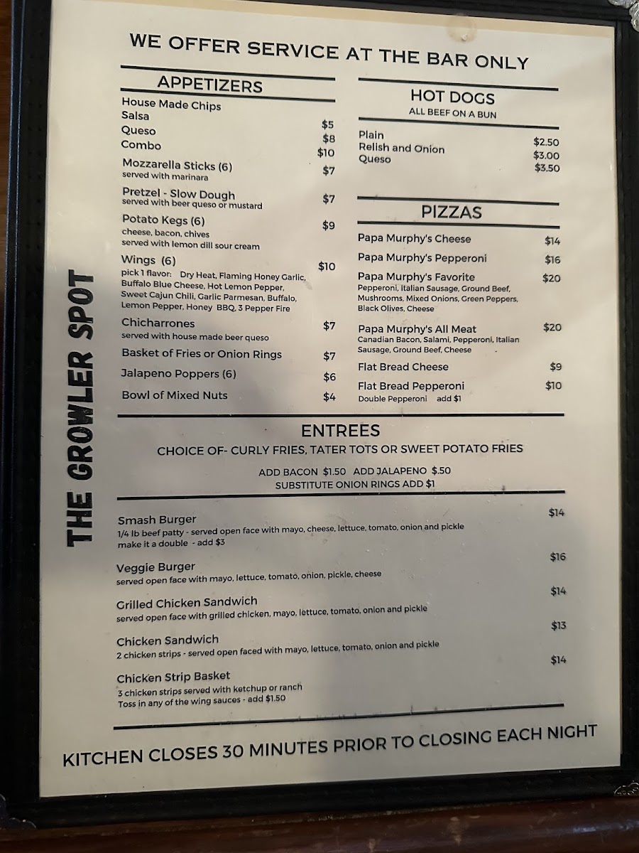 With enticing options and a welcoming atmosphere, The Growler Spot promises a memorable dining experience that you won't want to miss.